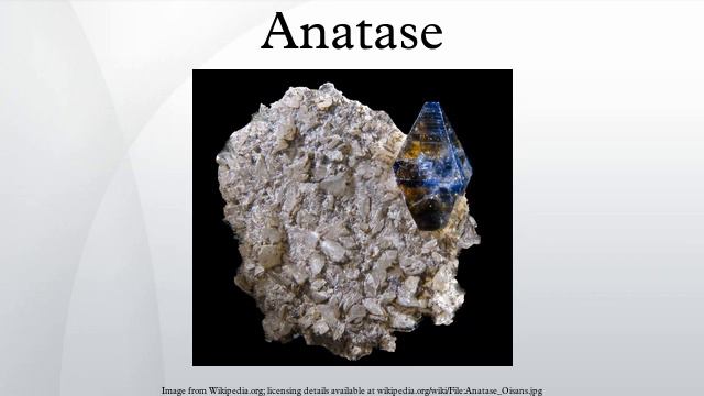 Anatase is one of the three mineral forms of titanium dioxide, the other two being brookite and rutile. It is always found as small, isolated and sharply developed crystals, and like rutile, a more commonly occurring modification of titanium dioxide, it crystallizes in the tetragonal system; but, although the degree of symmetry is the same for both, there is no relation between the interfacial angles of the two minerals, except in the prism-zone of 45° and 90°. The common pyramid of anatase, parallel to the faces of which there are perfect cleavages, has an angle over the polar edge of 82°9', the corresponding angle of rutile being 56°52½'. It was on account of this steeper pyramid of anatase that the mineral was named, by René Just Haüy in 1801, from the Greek anatasis, "extension", the vertical axis of the crystals being longer than in rutile. There are also important differences between the physical characters of anatase and rutile: the former is less hard and dense. Also, anatase is optically negative whereas rutile is positive, and its luster is even more strongly adamantine or metallic-adamantine than that of rutile. This video is targeted to blind users. Attribution: Article text available under CC-BY-SA Creative Commons image source in video
