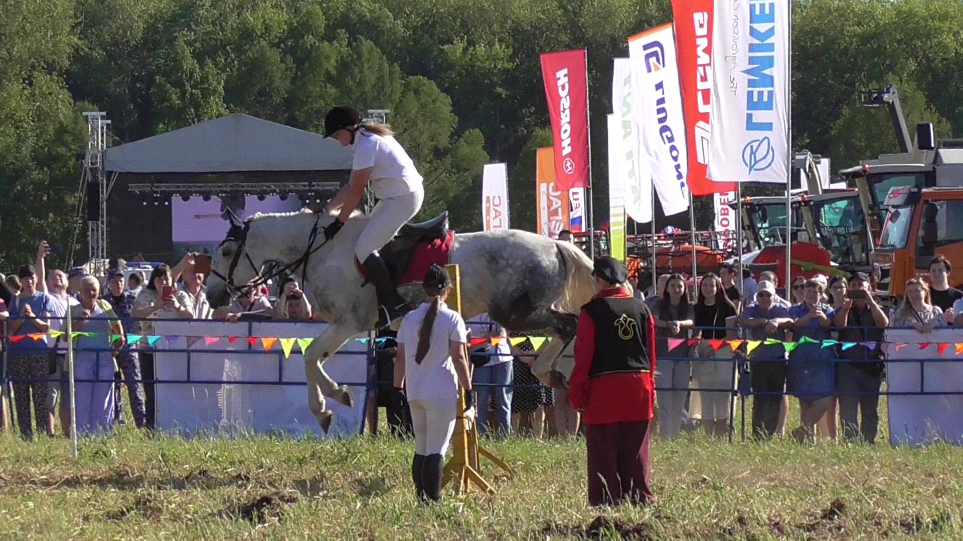 Лошади перепрыгивают через планку, видео 2024 год