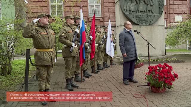 В СПбГУ состоялись торжественные мероприятия, посвященные 80-й годовщине Победы в Великой Отечественной войне. Подробнее в нашем дайджесте: - Открытие видеоинсталляции «Лента памяти: имена универсантов, погибших в Великой Отечественной войне» в Институте философии СПбГУ - В храме Святых Апостолов Петра и Павла СПбГУ прошла панихида по всем жизнь свою за Отечество положившим в Великой Отечественной войне - У стеллы «В бессмертие ушедшим» универсанты собрались на торжественно траурную церемонию возложения цветов и гирлянды - На стадионе СПбГУ прошла легкоатлетическая эстафета памяти героя Великой Отечественной войны Вячеслава Васильковского - В Актовом зале хор СПбГУ и оркестр русских народных инструментов Университета выступили с концертной программой к 80-летию Великой Победы