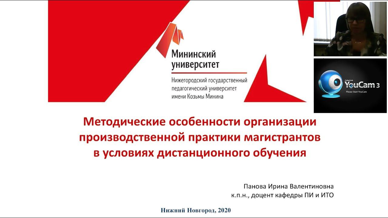 Панова Ирина Валентиновна, к.пед.н., доцент кафедры прикладной информатики и информационных технологий в образовании НГПУ им.К.Минина. Ирина Валентиновна представила опыт организации практики обучающихся в дистанционном формате.