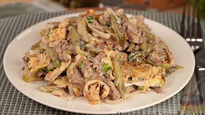 Салат «Министерский» обычно готовится с говядиной, но можно чуть отступить от привычного рецепта, приготовив его с куриной печенью. Блюдо от этого чуть преобразится и приобретёт новые вкусовые краски. #СалатМинистерский #МинестерскийСалат #СалатСПеченью #СалатСКуринойПеченью