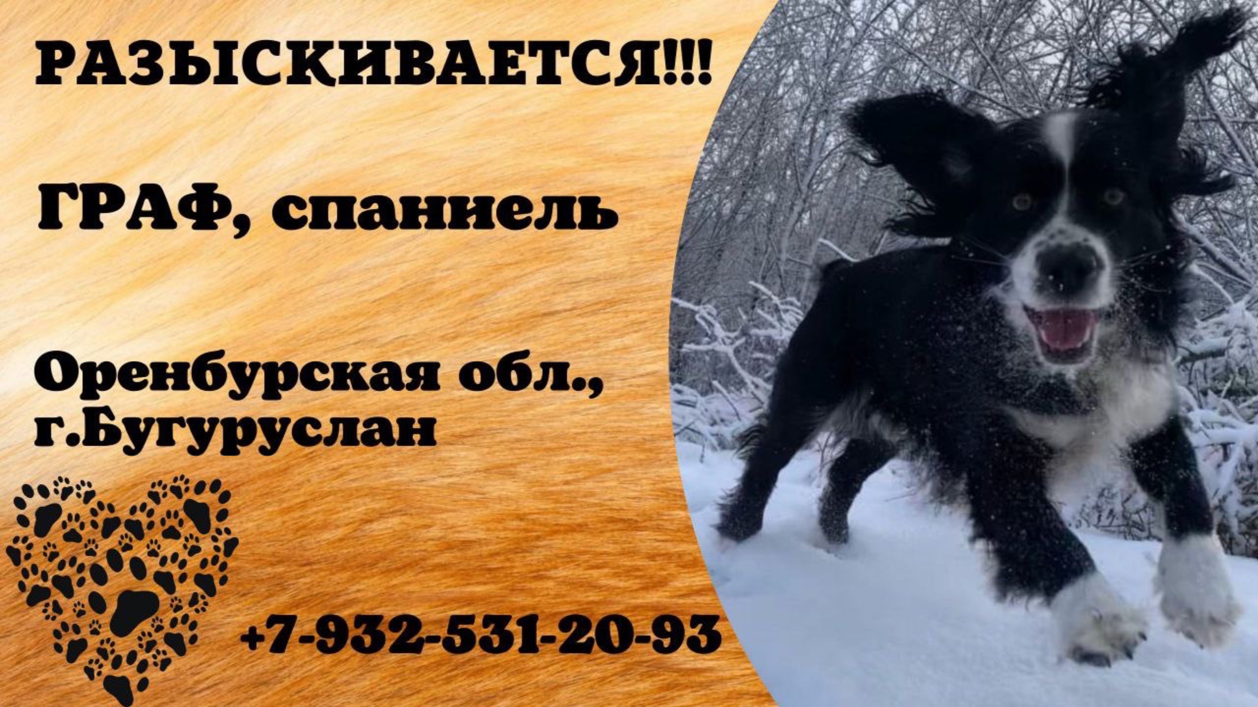 Оренбургская Бугуруслан Пропала собака 🐾Мы не оставляем надежд найти нашего любимца — собаку по кличке Граф. Если кто-то видел его или приютил, пожалуйста, сообщите нам! Мы будем очень благодарны за любую информацию. 💰 Предусмотрено денежное вознаграждение! Давайте вместе вернем Графа домой! ❤ Писать в лс или по номеру телефона 89325312093 Автор: https://vk.com/id142543355 Инфо: https://vk.com/wall-198815410_211656 #пропала_собака #оренбургская #бугуруслан #спаниель