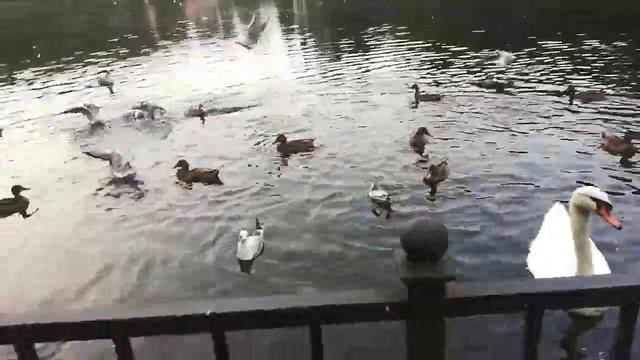 Кормление лебедей