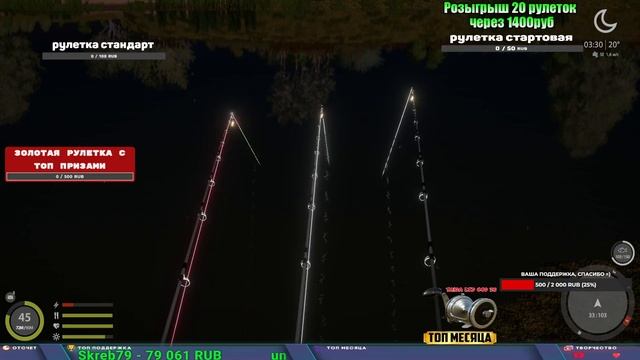Поддержка донатом https://www.donationalerts.com/r/kalyamba11 Альтернативный донат https://new.donatepay.ru/@1032463 Если стрим лагает,смотри стрим на трово https://trovo.live/s/Kalyamba_na_Ribalke ТОП 1 ДОНАТЕР МЕСЯЦА поддерживающий трансляции получит подарок в виде катушки TAIGA c40 2s Мой ВК - https://vk.com/kalyantv НИК в игре kalyan11 НАШ ДИСКОРД СЕРВЕР https://discord.gg/mSbnTJK8TB Заказ водоема на 1 час - 500р ( весь стрим 2500р ) Модерка на канале 1100р ( каждая следующая на 100р больше) Озвучка доната на 40р,50р,100р,200р,300р,500р,1000р ✅Призы в рулетке "ПРЕМИУМНАЯ" ✔ ЗОЛОТО ✔ ПРЕМ ✔ КАТУШКИ РАПТОР 40, АЗИМУТ 10000, СИЛЬВЕР 80, ТАЙГА с 30 ЮБИЛЕЙНАЯ, ✔ ПАЛКИ ПИЛКЕРНАЯ, ДОНКА МОРСКИЕ, ТОП КАСТИНГ ✔ РОД ПОД, СТУЛЬЯ ✅Призы в рулетке СТАНДАРТ : ✔ катушка "РАПТОР 40" ✔ катушка "АЗИМУТ 10000" ✔ катушка "ТАЙГА С30, С40, С30 (юбилейная)" ✔ катушки 60 для медного ( ЭВИИ, НАТОРЫ, ГОЛДА, и тд) ✔ ПИЛКЕРНОЕ УДИЛИЩЕ КОРОЛЕВА ОКЕАНА ✔ Тяжелый кастинговый спиннинг "Барракуда" ✔ Морское Донное удилище ✔ прем ( 3, 7, 30 дней) ✔ золото ( 1, 3, 5, 10, 20 ,50) ✔ билет на море ( 1, 3, 5 дней) ✔ голд наживка и др. ✅Призы в рулетке "СТАРТОВАЯ" ✔ катушка "silver80" ✔ катушка "БЕЛЫЙ КАЛИБР" ✔ катушка "Черный калибр" ✔ катушка "Протон" ✔ катушка "Нарга 6000" ✔ Набор Фидерист и спинингист ✔ Карповик Фортуна ✔ фидерные удилища ✔ прем, золото, алкашка, наживки и тд P.s Рулетка это не казино, а награда за поддержку стримера. Вечный ТОП ПОДДЕРЖКИ (11.05.2024) 1. Dimon_pokemonchik 119 784 2. Interceptor 75 508 3. Skreb79 71 261 4. une personne 68 619 5. Нарвал77 31 550