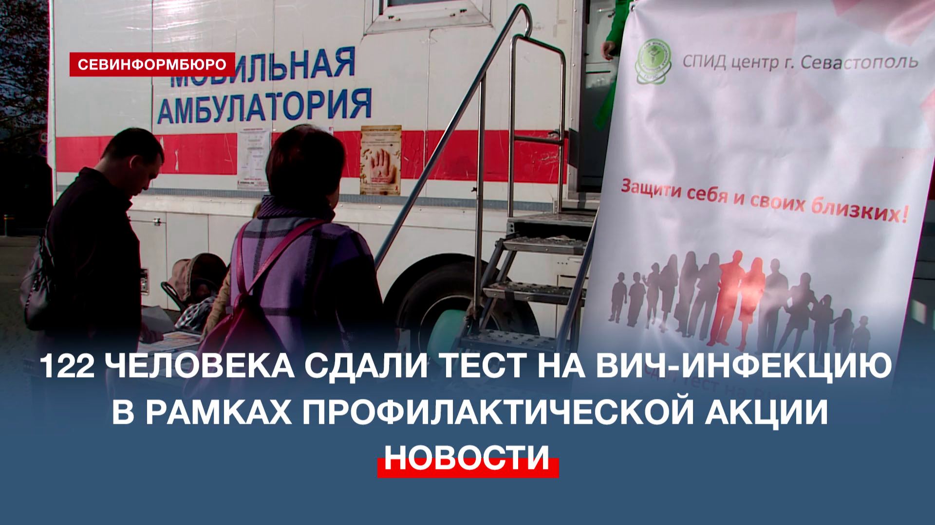 Более 100 севастопольцев сдали экспресс-тест на ВИЧ в рамках профилактической акции. Она, напомним, состоялась 28 ноября на площади Нахимова в преддверии Дня борьбы со СПИДом, который во всём мире отмечается 1 декабря. Подписывайтесь на наш Телеграм-канал: https://t.me/nts_novosti Смотрите новости Севастополя и Крыма на сайте НТС: http://nts-tv.com В нашей группе "ВКонтакте": https://vk.com/ntssevastopol На странице в "Одноклассниках": https://ok.ru/ntssevastopol
