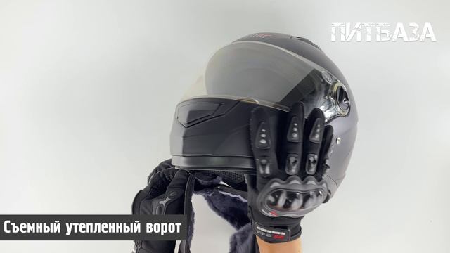 Шлем интеграл ПитБаза Safebet 112V с утепленным воротом черный-матовый