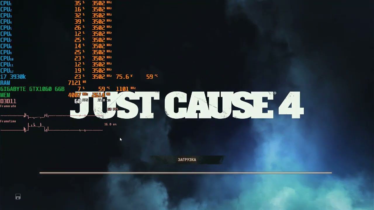 just cause 4 i7 3930K RAM HYPER X 16GB DDR3 1600 Gigabyte GTX 1060 OC 6GB HIGH GRAPHICS