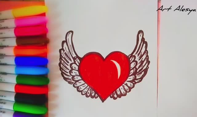 Как нарисовать сердце с крыльями!