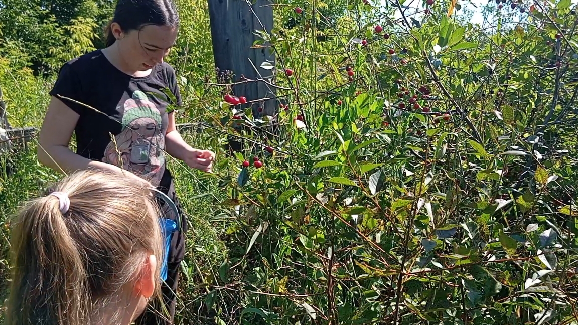 На даче.Собираем ягоду.Закрываю кампот.Уревелась...