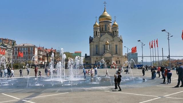Спасо-Преображенский кафедральный собор и "сухой" фонтан на центральной площади, 27.02.2022 г.
