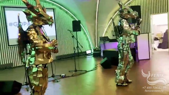 Заказать артистов в зеркальных костюмах на новый год в Москве - зеркальные драконы на праздник