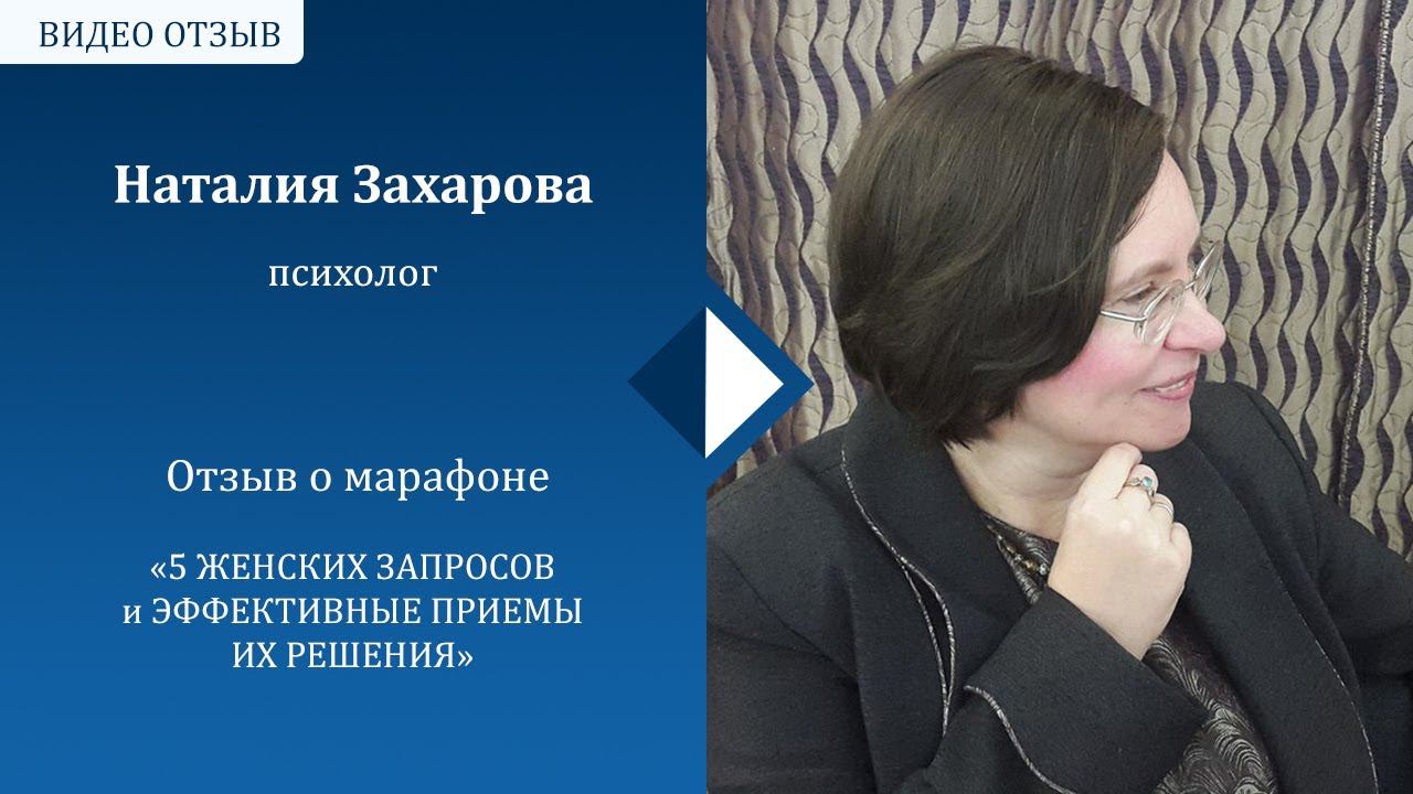 Отзыв Наталии Захаровой о марафоне «5 ЖЕНСКИХ ЗАПРОСОВ и ЭФФЕКТИВНЫЕ ПРИЕМЫ ИХ РЕШЕНИЯ»