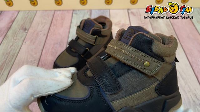 335197 Ботинки Pasito утепленные на липучках с черными вставками хлопковая стелька хаки