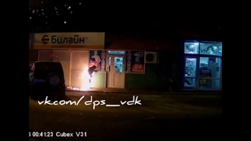 Во Владивостоке мужчина 26 декабря 2015 года при неизвестных обстоятельствах загорелся в магазине, а потом вышел на улицу и еще несколько метров прошел, полыхая огнем.