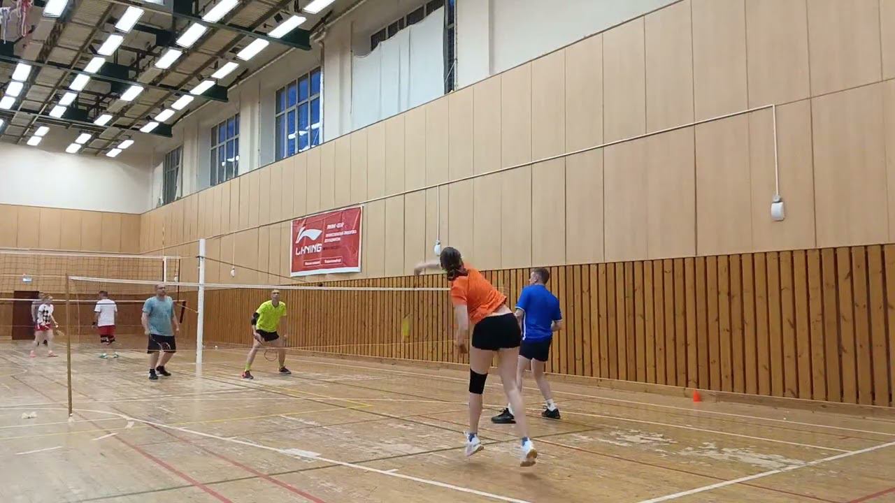 Тренировочная игра в бадминтон через сетку. Играют любители, новички и опытные бадминтонисты. Игра в Лестехе (МГУЛ ранее, сейчас называется филиалом Бауманки). Хочешь тоже играть? Приходи - https://badminton77.ru/map/4/ #badminton #badmintonlovers #badmintonrussia #lesteh #ЛесТех #бадминтон