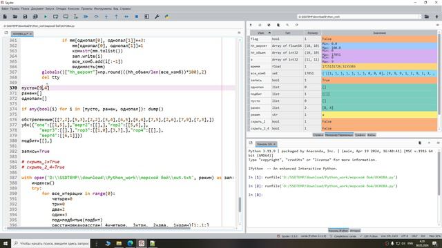 Игра в морской бой с полностью просчитанной позицией