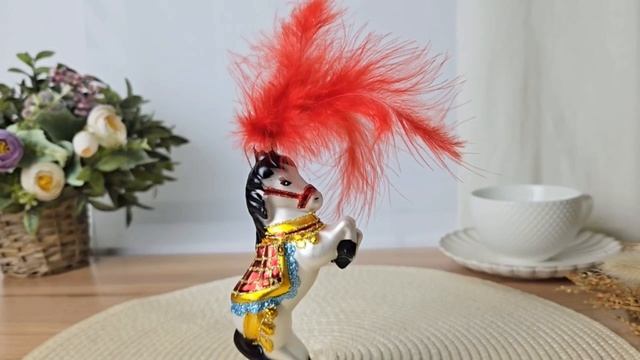 Стеклянная ёлочная игрушка ЦИРКОВАЯ ЛОШАДКА, 7х14 см, 1082772