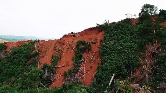 Бульдозер - D7R работает на краю утеса.