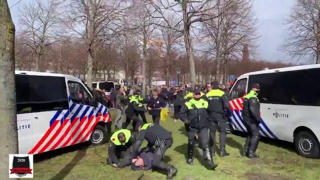 В Гааге полиция нежно и ласково разгоняет акцию протеста против коронавируса. Применяют водометы и дубинки, полиция не церемониться