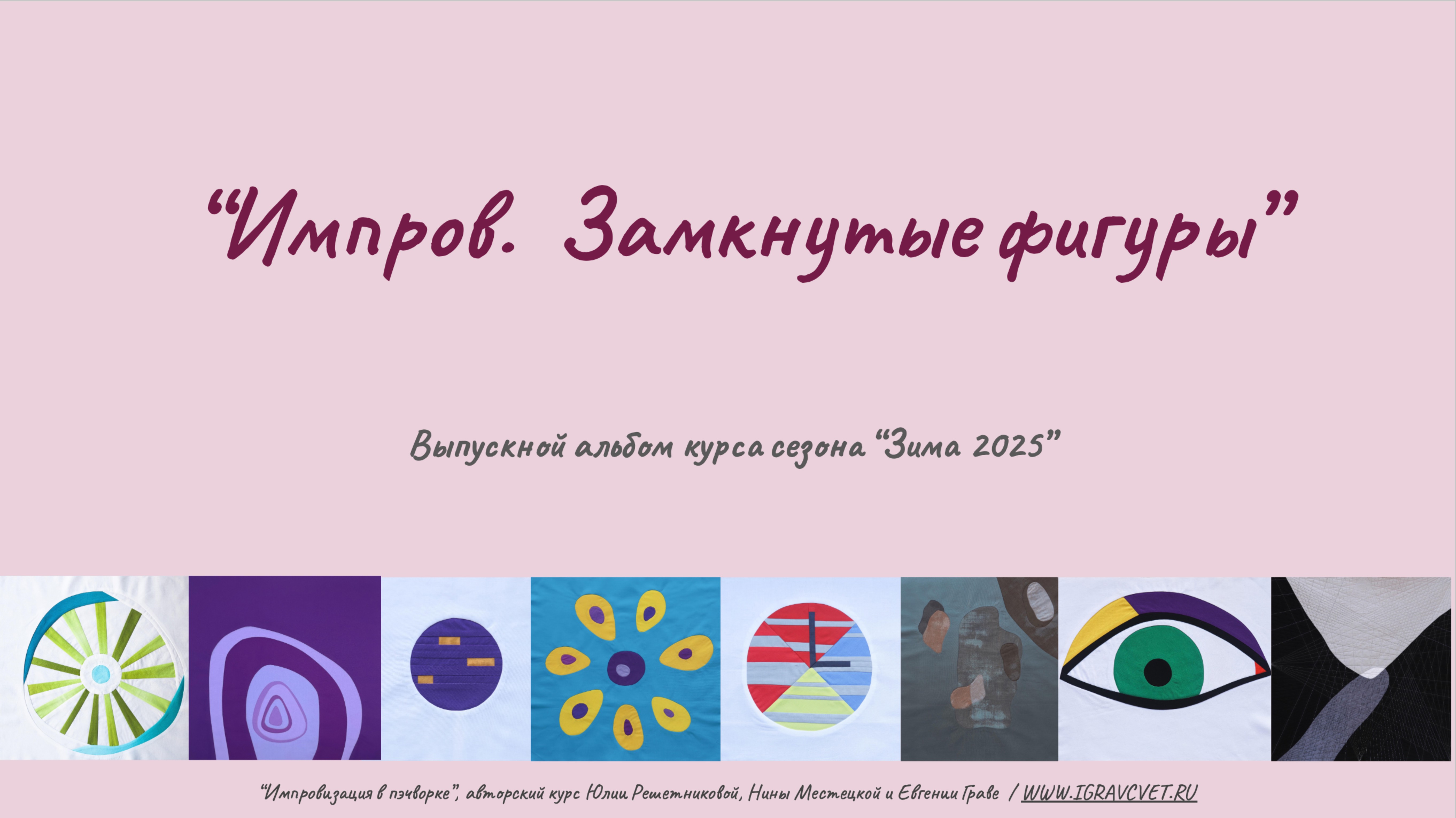 Сайт Школы "Игра в цвет": http://www.igravcvet.ru Презентация с выпускными работами по курсу "Импров. Замкнутые фигуры", зима 2025: https://docs.google.com/presentation/d/1DpjV7SnudxwzCYsPf1sSE3iMgaekcfF3RZg92SrccXo/edit?usp=sharing За новостями следите на нашем канале в Телеграме: https://t.me/igravcvet_school Или в группе ВКонтакте: https://vk.com/igravcvet