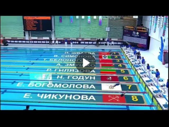 Финальный заплыв с участием Елены Богомоловой на международных соревнованиях по плаванию "Кубок Владимира Сальникова" 4 место 30,25 ЗМУШКО Алина 1997 (Беларусь, BLR) – 29.69 БЕЛОНОГОФФ Татьяна 2001 (Московская область, RUS) – 29.98 ГОДУН Ника 1997 (Москва, RUS) – 30.03 #ФПНО