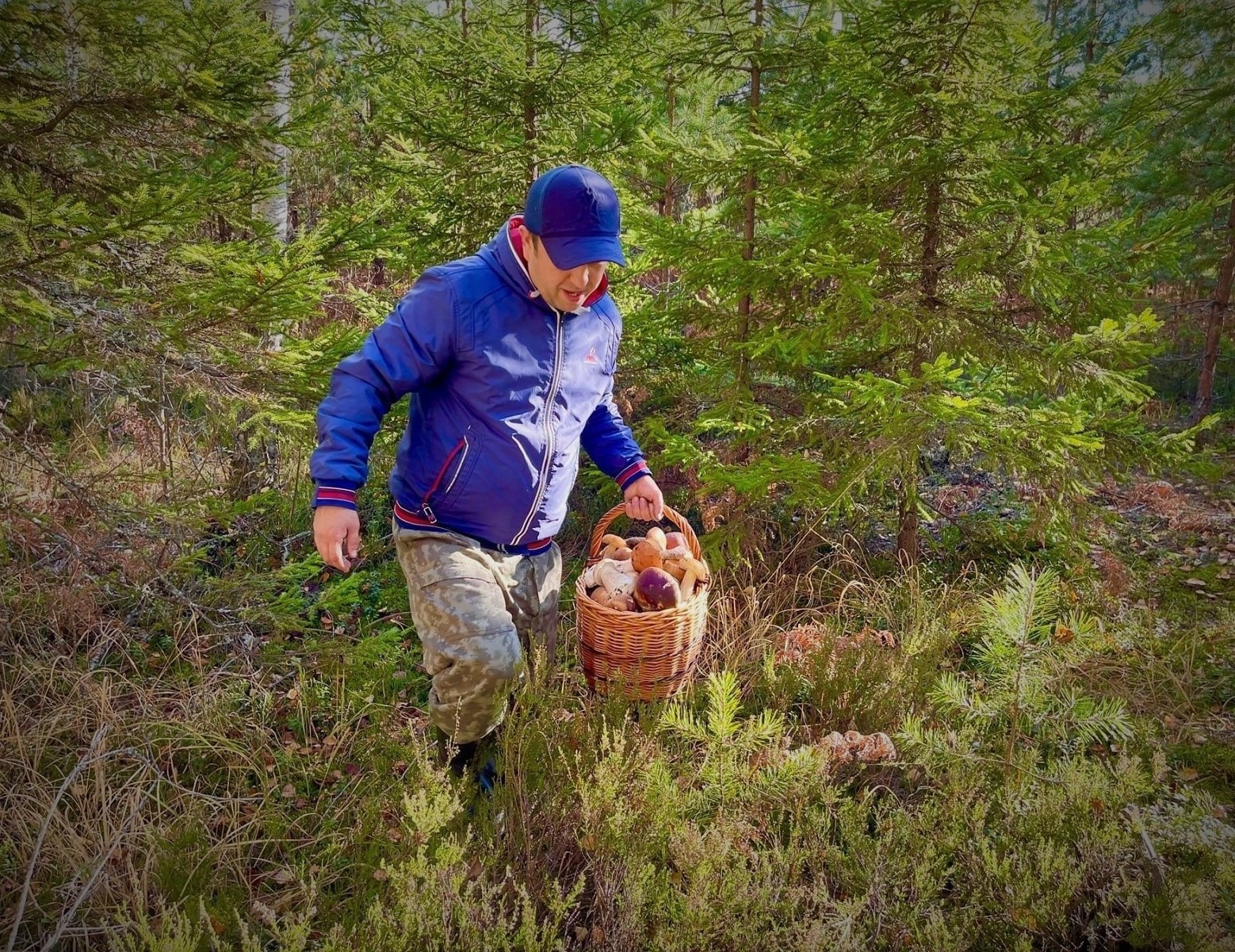 Грибник нашёл грибное место в глухом лесу. Белые грибы в большом количестве. Грибы разных видов в нетронутом лесу. Тихая охота на дары леса. Осенние грибы. Сбор грибов что надо! Удачная грибалка