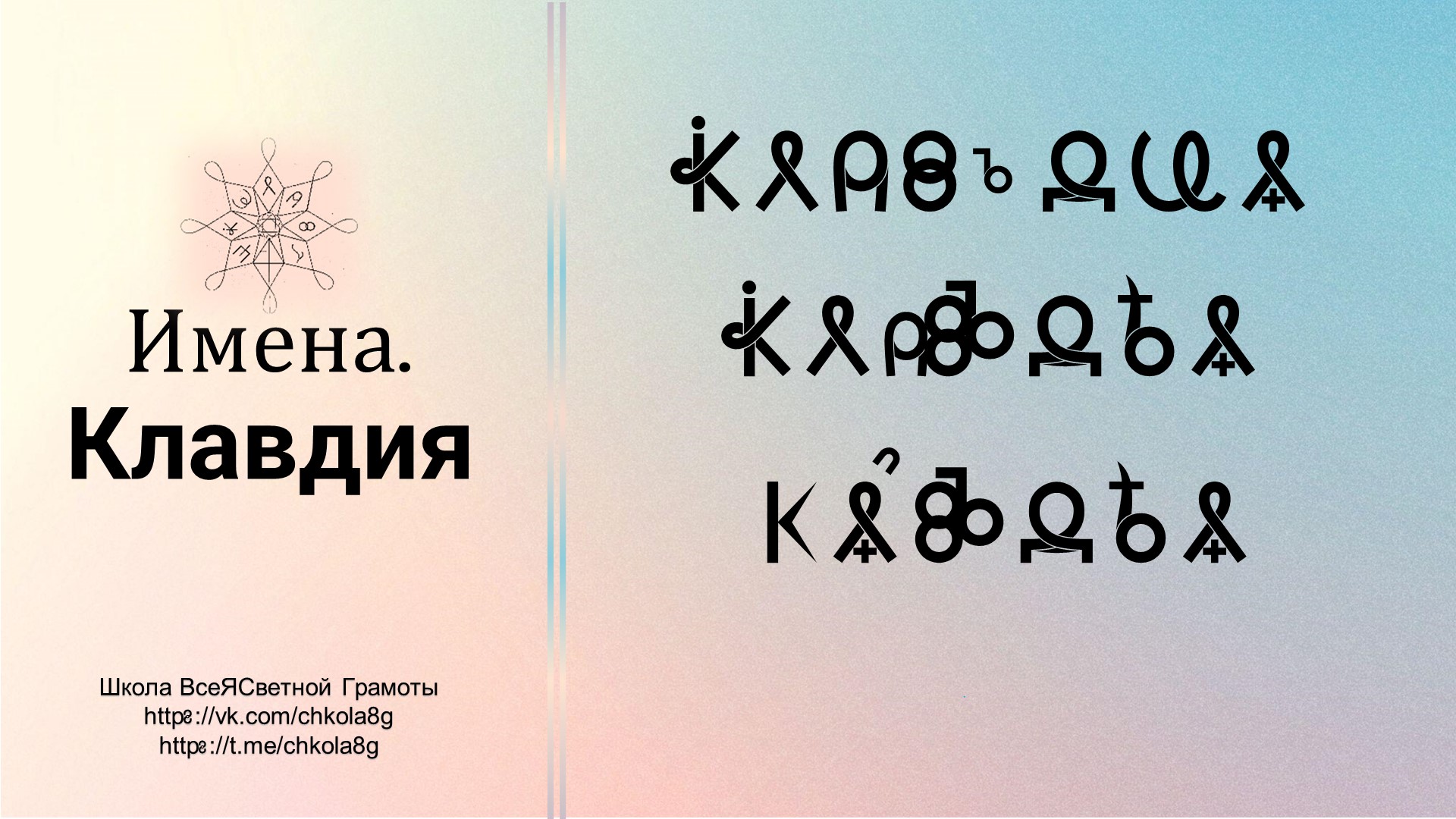В этом видео мы поговорим о таком Имени как "Клавдия" с точки зрения ВсеЯСветной Грамоты. Автор видео - Татьяна Константиновна Б.-С. Страница в ВК - https://vk.com/tkbaiko8a Телеграм-канал - https://t.me/chkola8g Для тех, кто хочет выразить благодарность автору видео и поспособствовать развитию канала: Сбербанк: 2202206172325172 МИР (Татьяна Константиновна С.) ГазпромБанк: 2200011808355474 МИР (Татьяна Константиновна С.), , карта привязана к номеру телефона +79657801147 Школа ВсеЯСветной Грамоты в ВК https://vk.com/chkola8g Литература и обучающие курсы по ВсеЯСветной Грамоте https://vk.com/lavkagramotew #Этимология #ВсеЯСветнаяГрамота #ВГ #ШколаВГ #etymology #Грамота #ЭтимологическийСловарь #ВсеЯСветная #учимграмоту #Клавдия
