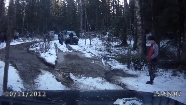 Справа при попытке проехать застрял подготовленный бухлобус. Потом на обратном пути я все-таки застрял в этой луже :).