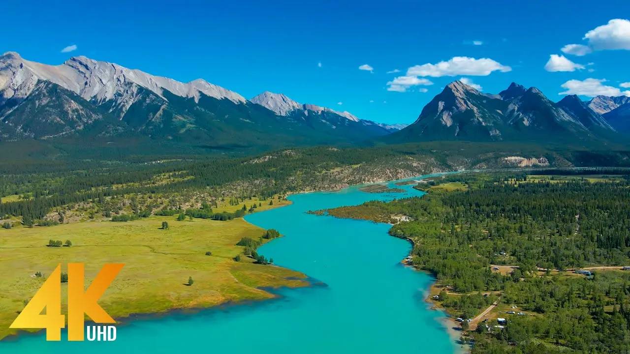 Flight over the River - Scenic Views of Cline River, Canada - 4K Cinematic Drone Footage