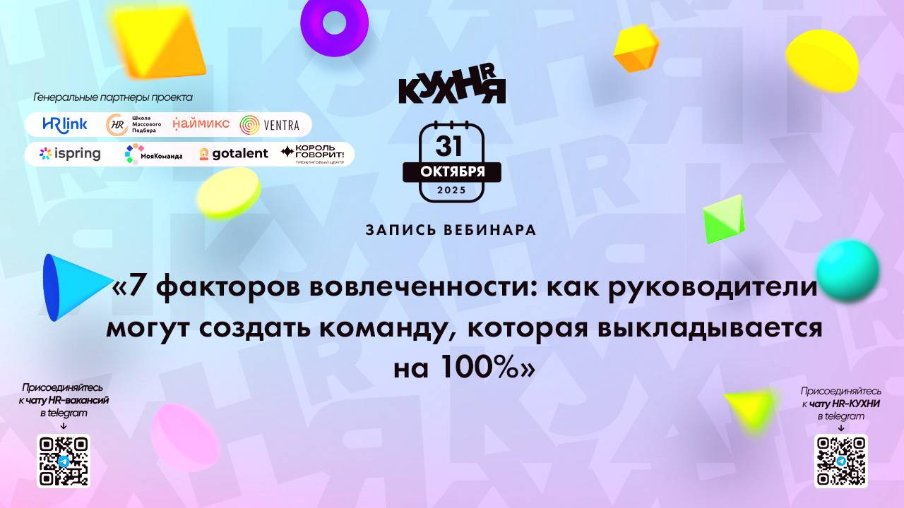 Присоединяйтесь к чатам и каналам HR-КУХНИ в телеграм: - Основной чат HR-КУХНИ в телеграм - https://t.me/+tYgAH0PgPQVkOWIy - Канал HR вакансий в телеграм - https://t.me/+CMNAN2u1hjo3M2Ri - Канал HR-EVENTS в телеграм - https://t.me/hr_kitchen - Канал HR JOURNAL в телеграм - https://t.me/hrkitchenjournal Полезные ссылки: - Каталог HR решений - https://hrkitchen.ru/exhibition - График конференций, бесплатных вебинаров, а также бесплатные курсы – https://hrkitchen.ru/ - Стать спикером HR-КУХНИ - https://hrkitchen.ru/speakers - Подписаться на полезную e-mail рассылку от HR-КУХНИ (новости, гайды, чек-листы, подарки от партнеров) - https://hrkitchen.ru/subscribe
