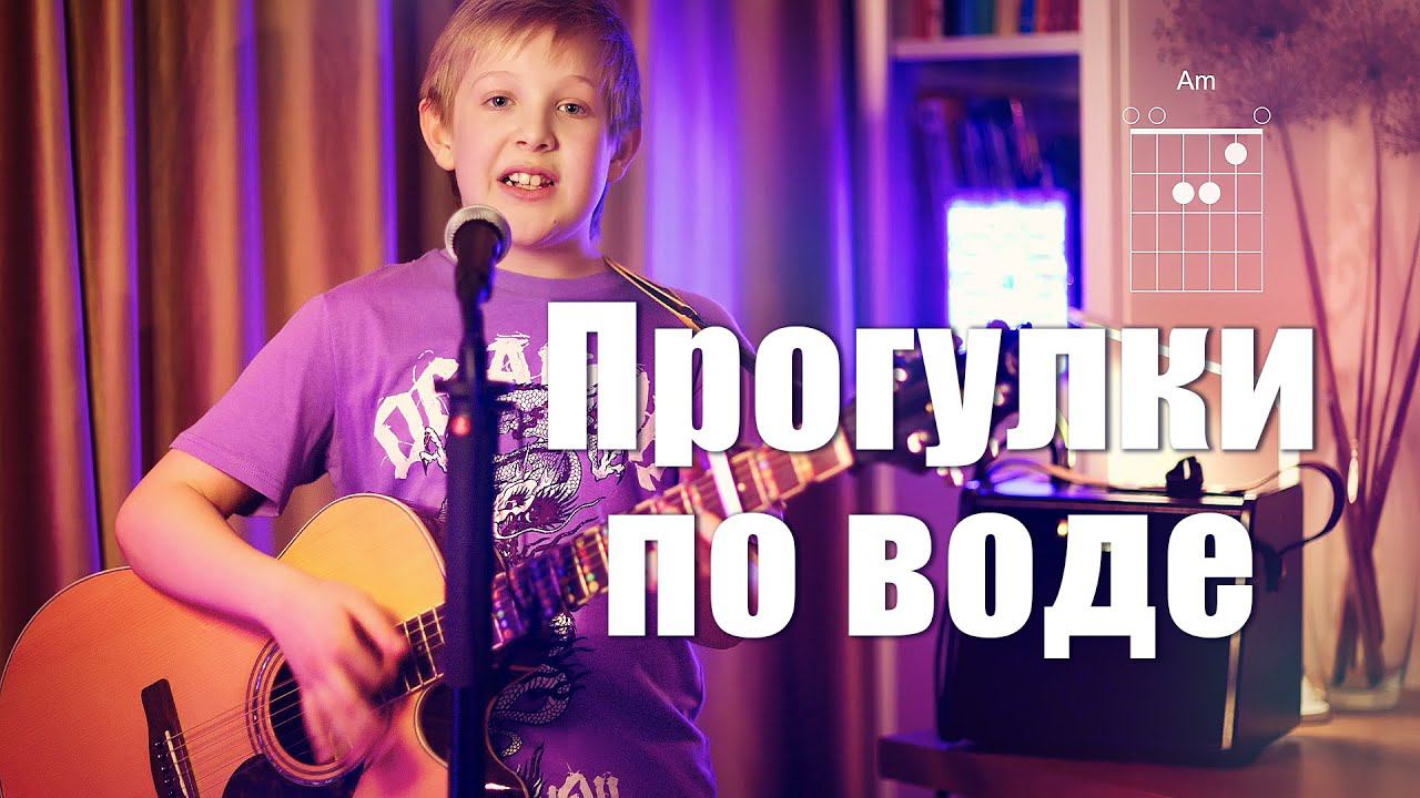 Рома (10 лет) поет под гитару песню "Прогулки по воде" (Вячеслав Бутусов) + аккорды. Авторы текста: Вячеслав Бутусов, Илья Валерьевич Кормильцев Текст песни С причала рыбачил апостол Андрей А Спаситель ходил по воде И Андрей доставал из воды пескарей А Спаситель — погибших людей И Андрей закричал — я покину причал Если ты мне откроешь секрет И Спаситель ответил "Спокойно Андрей, никакого секрета здесь нет Видишь там, на горе, возвышается крест Под ним десяток солдат. Повиси-ка на нем А когда надоест, возвращайся назад Гулять по воде, гулять по воде, гулять по воде со мной!" "Но учитель, на касках блистают рога Черный ворон кружит над крестом... Объясни мне сейчас, пожалей дурака А распятье оставь на потом" Онемел Спаситель и топнул в сердцах По водной глади ногой "Ты и верно дурак!" и Андрей в слезах Побрел с пескарями домой Видишь там, на горе, возвышается крест Под ним десяток солдат. Повиси-ка на нем А когда надоест, возвращайся назад Гулять по воде, гулять по воде, гулять по воде со мной! Видишь там, на горе, возвышается крест Под ним десяток солдат. Повиси-ка на нем А когда надоест, возвращайся назад Гулять по воде, гулять по воде, гулять по воде со мной!