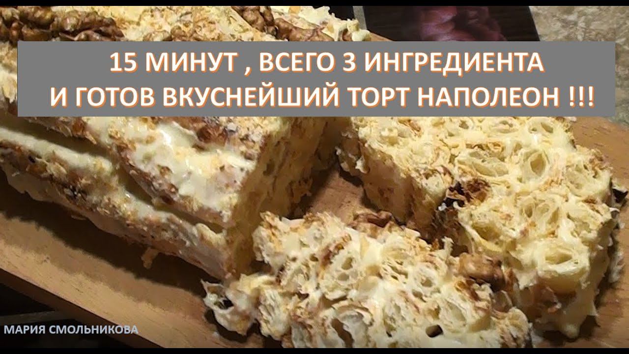 15 МИНУТ,всего 3 ИНГРЕДИЕНТА и готов вкуснейший ленивый ТОРТ НАПОЛЕОН !!!