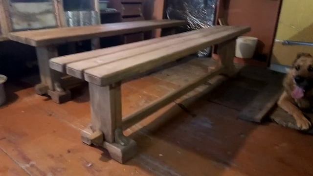 Лавки из гарнитура (стол плюс две лавки). Сделанные из массива сосны в единственном экземпляре.