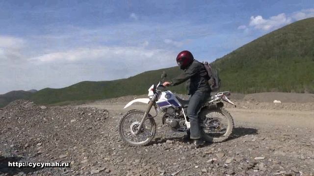 Начало июля 2013 г. Катаемся на Ямахах Yamaha Serow (мотоциклы класса Эндуро) - пока еще пробуем ихние силы, но по первым прикидкам хоть и 225 кубиков, не 350 и не 450, но прёт в гору как танк... Сусуман, Колыма, Магаданская область