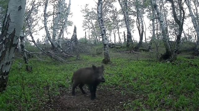 В селе Ишалка кабан, рывший землю в поисках еды, был напуган истошным криком косули, попав на фотоло