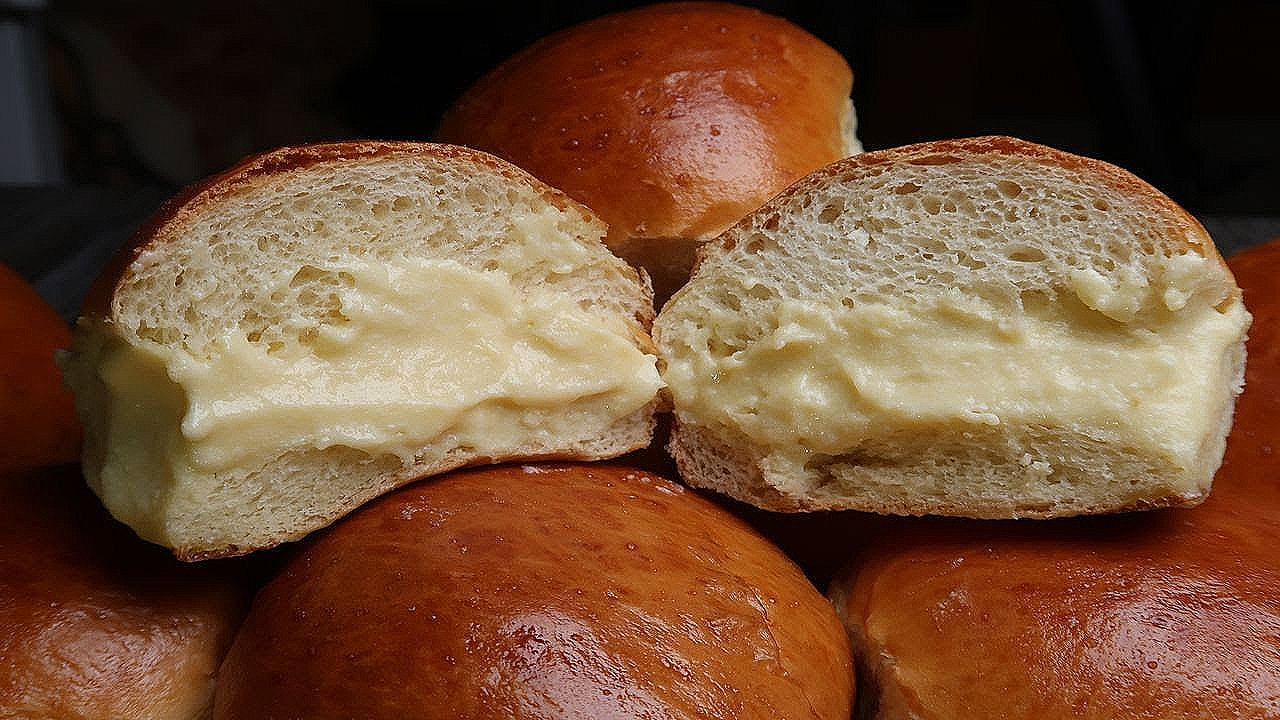 Ингредиенты: Тесто: Мука - 600 грамм, Сахар - 60 грамм, Соль - 0,5 чайной ложки, Дрожжи сухие - 6 грамм, Яйца - 2 штуки, Молоко - 300 мл., Масло сливочное - 60 грамм, Крем: Молоко - 500 мл., Сливки 33 % - 200 мл., Яйца - 6 штук, Мука - 20 грамм, Крахмал - 16 грамм, Сахар - 120 грамм, Сахарная пудра - 20 грамм, Сливочное масло - 50 грамм, Ванилин - 1 грамм. Булочки выпекала в духовке 18 минут при температуре 180 градусов и 12 минут при температуре 120 градусов. Вам нужно смотреть по своей духовке. КУХОННЫЕ ПРИНАДЛЕЖНОСТИ, КОТОРЫЕ ИСПОЛЬЗУЮ В СВОИХ ВИДЕО ✅ ТЁРКА: https://fas.st/7f-6DE ✅ ГРИЛЬ: https://goo.su/c6Tc ✅ ПЛАНЕТАРНЫЙ МИКСЕР: https://goo.su/bhOq ✅ БЛЕНДЕР ДЛЯ ТОФУ: https://fas.st/lm-zB ✅ РИСОВАРКА: https://fas.st/6x9kd ✅ ТЕСТОРАСКАТОЧНАЯ МАШИНКА: https://fas.st/5g8607 ✅ ЗАКАТОЧНАЯ МАШИНКА: https://fas.st/4a44Cd