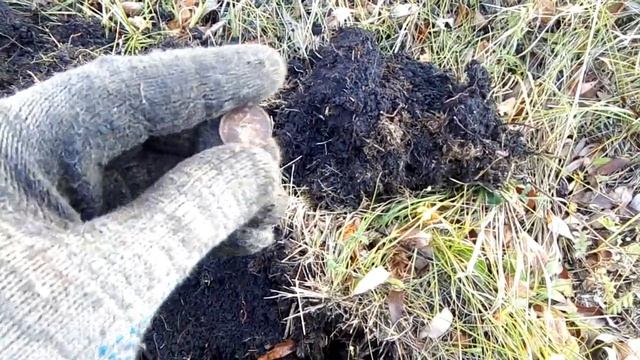 Коп монет с металлоискателем осенью возле бывшего магазина