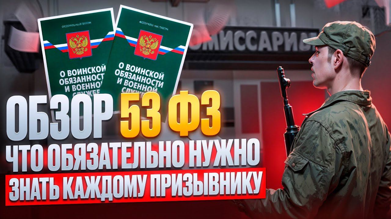 Пройдите виртуальную медицинскую комиссию в военкомате https://l.armycons.ru/virtcom_yt/ ✅ Наш сайт https://armycons.ru ✅ Телеграмм-канал https://t.me/VoenniybiletSZP #фз53 #обзорфз53 #призыв2024 #призывник #службавармии В этом видео мы расскажем все о ФЗ 53. Поговорим на что нужно обязательно обратить внимание, что нужно изучить, чтобы быть подготовленными к походу в военкомат. Если это видео было вам полезно, передавайте его друзьям. Смотрите еще больше видео: Когда и в каких случаях призывнику нужно непременно идти в Прокуратуру https://youtu.be/uuIrc7NhZXw Незаконный призыв в армию https://youtu.be/IX0URtnRmIk Стоит ли служить в армии сейчас https://youtu.be/HzB-HHtxLyQ Кого призовут на Военную службу в Июле https://youtu.be/5PIaZtrsi8M Отказ в решении призывной комиссии https://youtu.be/n8VF6UV5iMg Делитесь в комментариях своими мыслями и задавайте вопросы! Подписывайтесь на канал, чтобы не пропустить новые видео с важной и полезной информацией для призывников. Немного о нас: Рады Вас видеть на нашем канале. Медико-правовая компания "Служба защиты призывников" поможет вам отстоять свои права в военкомате и получить военный билет на законных основаниях. Из видео нашего канала вы узнаете множество практических советов, которые вам помогут получить военный билет. #ошибкипризывников #защитапризывников #военкоматмобилизация #военник #военкоматмобилизация