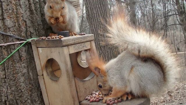 Две белочки-девочки кушают орешки и не ругаются