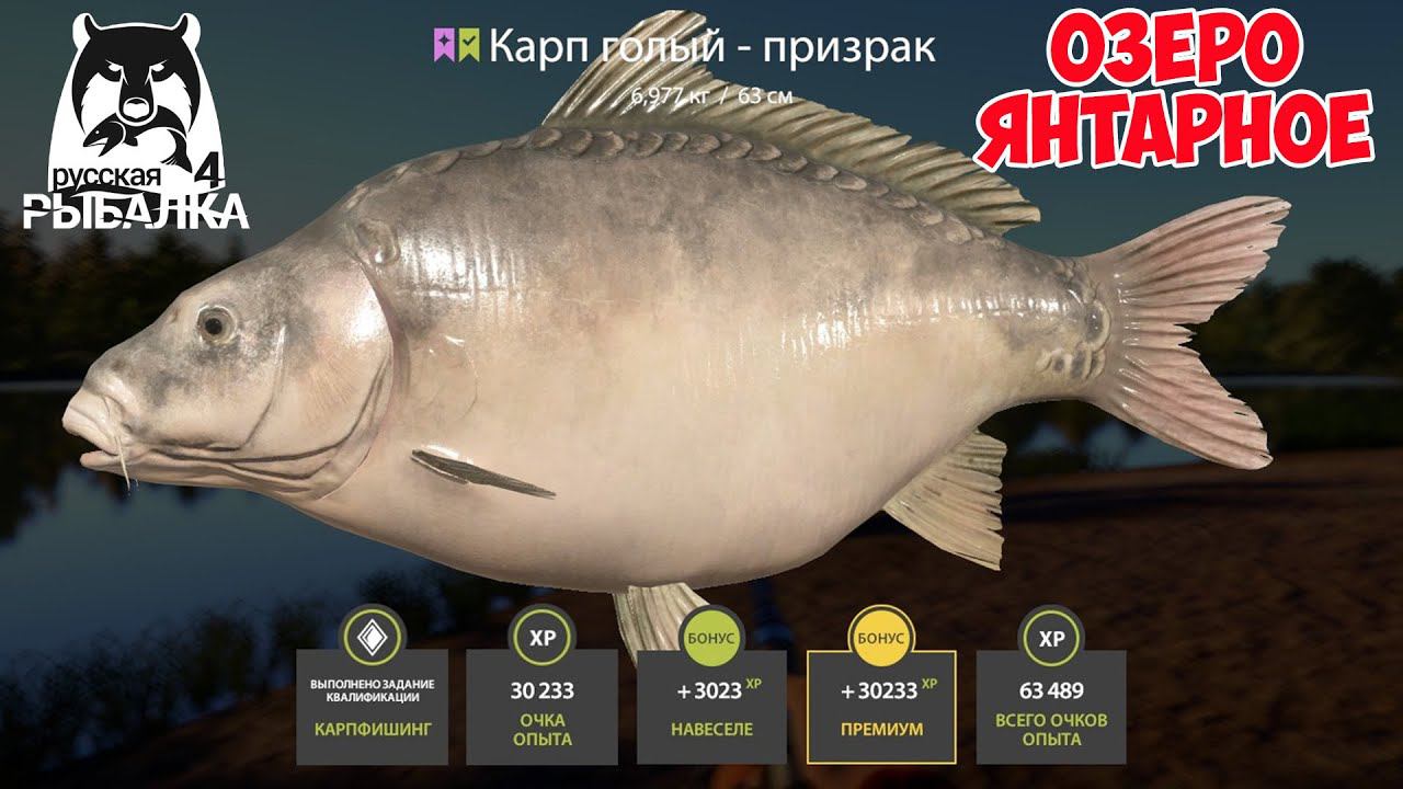 ОТЛИЧНАЯ ТОЧКА С ЦВЕТНЫМИ КАРПАМИ НА ЯНТАРНОМ ОЗЕРЕ В РУССКОЙ РЫБАЛКЕ 4 РР4