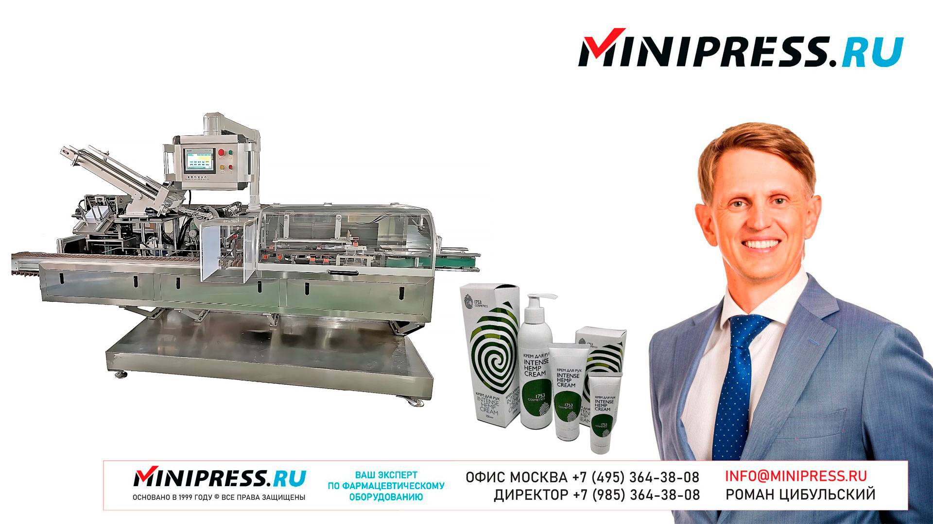 Горизонтальная автоматическая картонажная машина ZH-23 https://Minipress.ru/katalog/ Фармацевтическое оборудование. Специалисты в фармацевтическом оборудовании и технологиях производства лекарств. Более 20 лет оказываем нашим клиентам помощь в выборе, поставке, наладке различного фармацевтического оборудования! Вы в поиске надежного поставщика оборудования? Мы предоставим вам лучший сервис 24/7. Собрана лучшая команда профессионалов в фармацевтической отрасли и налажены стабильные связи с лучшими производителями. Мы не только продаем, но и производим многие модели оборудования Директор компании Минипресс Роман Цибульский Поставка фармацевтического оборудования в Россию Пишите: info@minipress.ru Телефон +7(495)364-38-08; Мобильный +375(29)308-00-00 Россия, Москва Skype: RomanTsibulsky; ICQ: 310-134-490 Подписывайтесь на наш видео канал на Youtube https://youtube.com/user/wwwMinipressru Обновленный сайт https://Minipress.ru Каталог оборудования https://Minipress.ru/katalog/ МЫ В СОЦИАЛЬНЫХ СЕТЯХ G+ https://plus.google.com/+RomanTsibulsky/ FB https://facebook.com/roman.tsibulsky YOUTUBE https://youtube.com/user/wwwMinipressru IN https://ru.linkedin.com/pub/roman-tsibulsky/a6/933/661 БОЛЬШОЙ КАТАЛОГ ФАРМАЦЕВТИЧЕСКОГО ОБОРУДОВАНИЯ https://minipress.ru/katalog/ Постоянно обновляемый каталог различного фармацевтического оборудования с фотографиями, описаниями, видео и ценами. ПЕРСОНАЛЬНЫЙ МЕНЕДЖЕР 24 ЧАСА https://minipress.ru/katalog/ Вы общаетесь по всем вопросам, с момента первой консультации и до получения оборудования, с одним специалистом. СПЕЦИАЛИСТЫ И ТЕХНОЛОГИ https://minipress.ru/katalog/ Имеем обширные связи в фармацевтической среде, найдем любого специалиста, поможем с освоением оборудования и технологий. ОБСУЖДЕНИЕ ВАШИХ ИДЕЙ ПО ПРОИЗВОДСТВУ ПРОДУКЦИИ https://minipress.ru/katalog/ Поможем в оценке ваших идей. Большой опыт в организации различных производств и выпуске продукции. Ценные советы. ФАРМАЦЕВТИЧЕСКОЕ ОБОРУДОВАНИЕ Мы поставили перед собой задачу, помогать нашим клиентам в правильном выборе фармацевтического оборудования. Многолетний опыт подобной деятельности показывает, что многие клиенты сталкиваются, в первую очередь, с непониманием технологического процесса. Покупка оборудования должна быть финальной точкой после подробного обсуждения задачи, консультацией с производителем оборудования, отправкой сырья и материалов на фабрику, тестирования в работе. ДЛЯ ТАБЛЕТОК https://minipress.ru/katalog/category/farmacevticheskoe_oborudovanie/ Смешивание порошков, гранулирование, прессование, обеспыливание, покрытие оболочками, фасовка, упаковка, счет, нанесение логотипов ДЛЯ ЖЕЛАТИНОВЫХ КАПСУЛ https://minipress.ru/katalog/category/farmacevticheskoe_oborudovanie/kapsulyatory-dlya-tverdyh-zhelatinovyh-kapsul/ Фасовка порошков и масел, обеспыливание, счет и фасовка, упаковка, нанесение логотипов. ФАСОВКА И УПАКОВКА https://minipress.ru/katalog/category/upakovochnoe_oborudovanie/ Упаковка в пластиковые и стеклянные флаконы, блистер, фольгу, ламинированную бумагу, стеклянные ампулы, саше, стрипы, тубы, тюбики, контурную ячейку. ТЕХНОЛОГИЧЕСКОЕ https://minipress.ru/katalog/category/eksperimentalnoe-oborudovanie/ Лабораторное, аналитическое, подготовительное, отдельные машины и линии под ключ. СФЕРЫ ДЕЯТЕЛЬНОСТИ Наша компания занимается множеством направлений фармацевтического бизнеса! Предлагаем Вам посетить страницы нашего сайта https://www.Minipress.ru по различным специализациям. ОБОРУДОВАНИЕ ДЛЯ НАКЛЕЙКИ ЭТИКЕТОК НА БУТЫЛКИ АМПУЛЫ ФЛАКОНЫ https://minipress.ru/katalog/oborudovanie-s-otzyvami/oborudovanie-dlya-naklejki-etiketok-na-butylki-ampuly-flakony/ Автоматическое этикетировочное оборудование для этикеток на клеевой ос