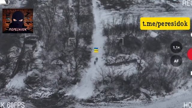 ВСУшник на столько устал воевать, что вылез из норы и побрёл не обращая внимания на сбросы с БПЛА
