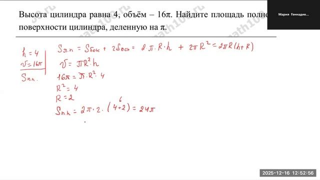 1612 объем цилиндра. решение задач