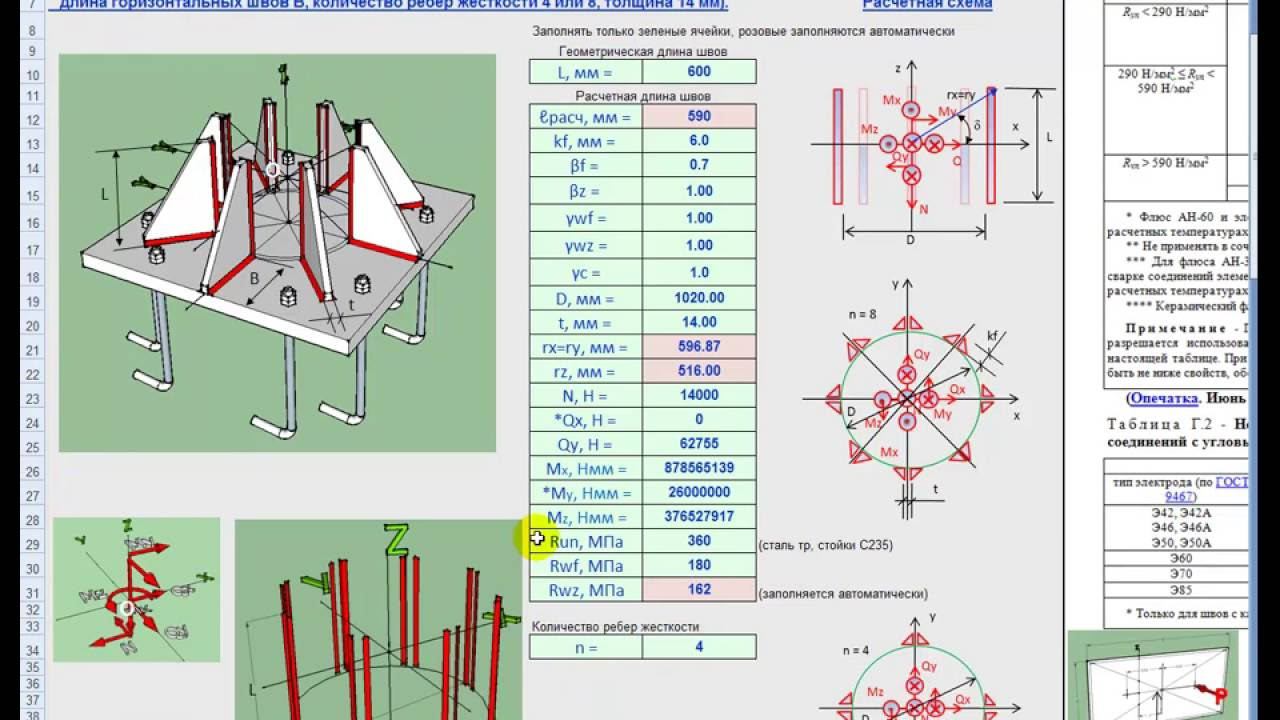 Все мои платные продукты на странице http://shop.sopromex.ru/ Подписка на бесплатные материалы http://m1.sopromex.ru/ В видео представлена техника расчета в калькуляторе "Расчет угловых сварных швов" вертикальных кольцевых в плане угловых швов при действии сил и моментов в соответствие с СП 16.13330.2011 СК и Пособием по расчету и конструированию сварных соединений СК.