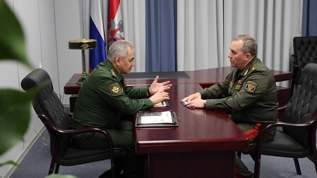Министр обороны РФ генерал армии Сергей Шойгу на полях Международного военно-технического форума «Армия-2023» провел переговоры со своим белорусским коллегой генерал-лейтенантом Виктором Хрениным. В ходе встречи обсуждены вопросы военного и военно-технического сотрудничества двух стран по линии министерств обороны. На форуме развернута экспозиция Республики Беларусь, которую сегодня посетил Министр обороны Российской Федерации. Источник: ДИМК МО РФ