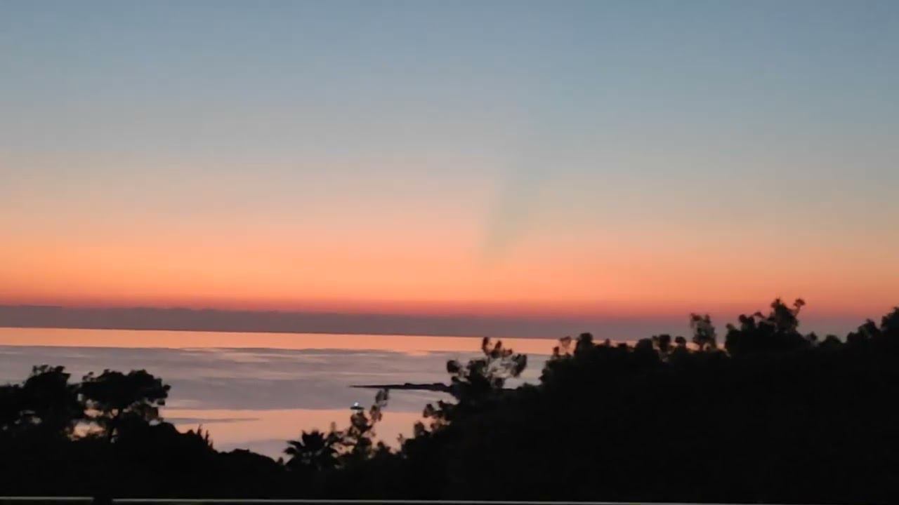 Странное свечение зелёного света, как луч, над Средиземном морем