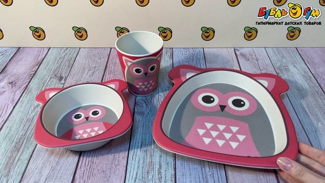 332013 Набор посуды BUBURU Baby Сова розовая бамбук 5пр с 12мес