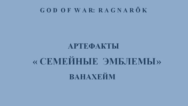 Ссылка на плейлист God of War: Ragnarök https://rutube.ru/plst/949182 Набор артефактов «Семейные эмблемы»: Ванахейм - 1. Сад Ноатуна (Эмблема Хёнира) 0:06 2. Дельта реки (Эмблема Одина) 0:33 3. Дельта реки (Эмблема Фрейи) 1:01 4. Сокрытый проход (Эмблема Квасира) 1:29 5. Святилище ванов (Эмблема Хюлли) 2:29 6. Лагерь Фрейра (Эмблема Скирнира) 3:22