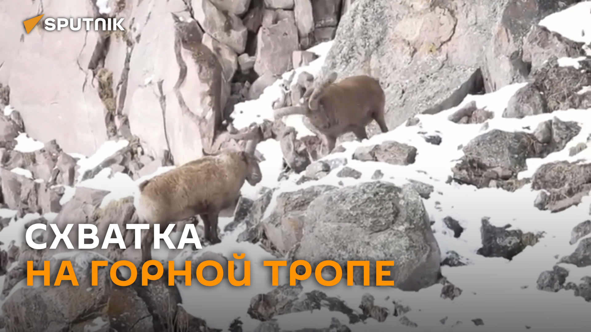Видеоловушке удалось заснять схватку двух восточно-кавказских туров на горной тропе в национальном парке "Казбеги" в Грузии ― в центральной части Большого Кавказа, у подножия горы Казбек.