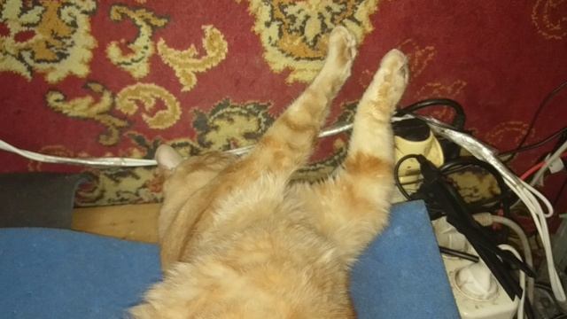 кот как спящий гимнаст вытянул лапки и держит на весу